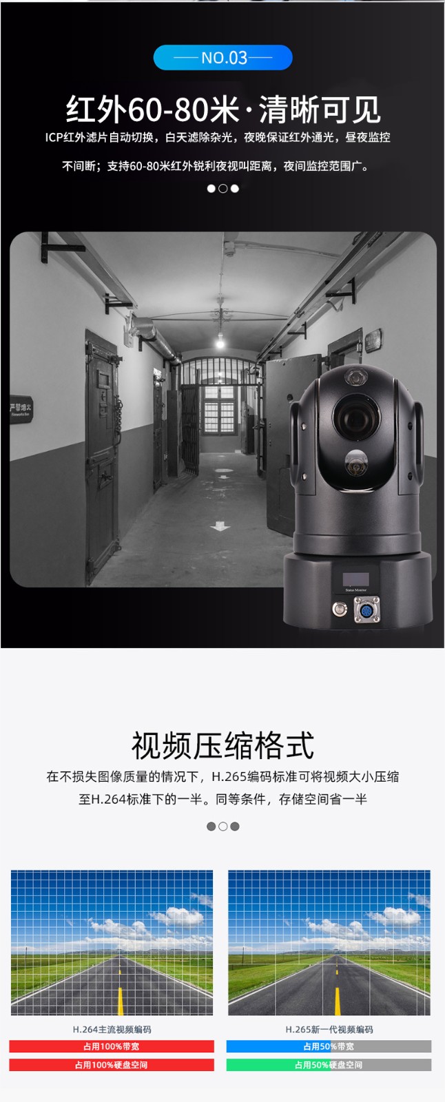 ●1080P高清視頻,H.265視頻編碼,向下兼容H.264,雙碼流;